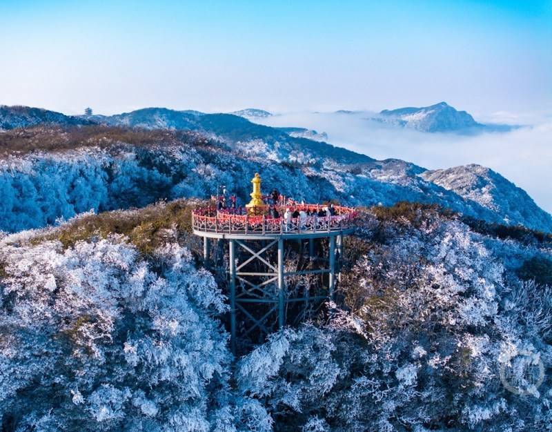 雪后的金佛山银装素裹,宛如童话世界,游客们纷纷拍照留念,尽享冬日乐趣。